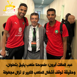 ولكون جميع الصفحات الفايسبوكية ومواقع التواصل الإجتماعية وجماهير مدينة تطوان وجهت نداءا للحاج عبد المالك أبرون الإبن البار لمدينة تطوان الرئيس السابق للمغرب أتلتيكو تطوان العضو الجامعي ورئيس لجنة البنيات التحتية بالجامعة حتى لا يبقى محايدا ولا صامتا، وهو الذي كان جزءا وقريبا من الملعب الكبير، إتصلنا بالحاج عبد المالك أبرون وبصدر رحب وبمسؤولية كبيرة قدم توضيحات مهمة حول إستفسارات ساكنة تطوان عن مصير الملعب الكبير، حيث عبر عن كامل إستعداده لدعم المدينة بكل الإمكانيات الممكنة من أجل التعجيل بالإفراج عن هذا المرفق الرياضي الذي طال انتظاره، في خطوة تعكس، بحسب العديد من المتتبعين، إحساسًا عميقًا بالمسؤولية تجاه المدينة.