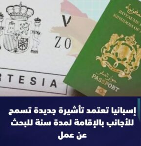 في إطار سعيها إلى جذب الكفاءات الأجنبية وسدّ العجز المسجل في عدد من القطاعات الحيوية، أعلنت السلطات الإسبانية عن اعتماد تأشيرة جديدة تتيح للأجانب الإقامة داخل التراب الإسباني لمدة سنة كاملة بغرض البحث عن عمل، مع إمكانية تحويلها لاحقًا إلى إقامة عمل رسمية في حال الحصول على عقد.