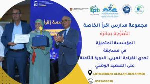 وعلاوة على ذلك، فإن تتويج المؤسسة بجائزة التميز في تحدي القراءة العربي على الصعيد الوطني يشكل محطة بارزة في مسارها، غير أن هذا التتويج، في عمقه، يعكس نتيجة طبيعية لمسار طويل من الاشتغال المتواصل… حيث إن الإنجاز لم يكن وليد لحظة، بل ثمرة تراكمات دقيقة، اشتغلت خلالها المؤسسة على ترسيخ ثقافة القراءة بوصفها ممارسة يومية، لا نشاطاً ظرفياً.