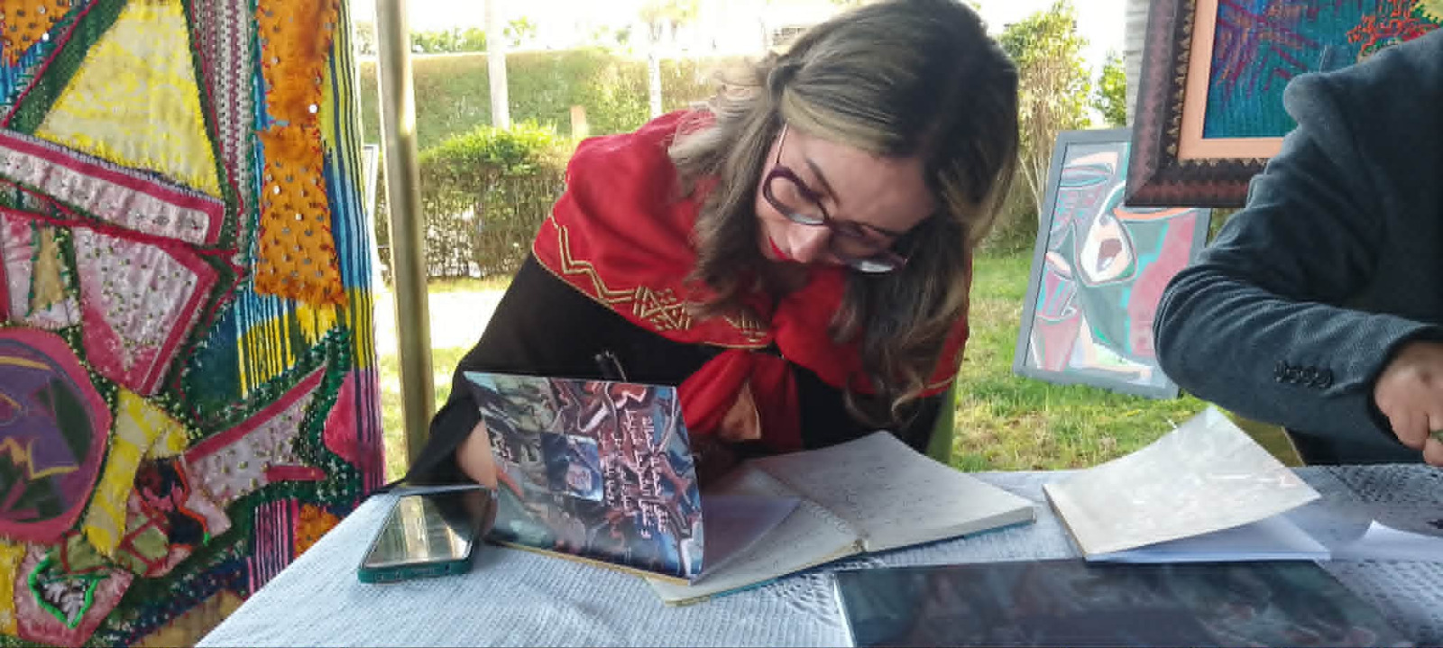 بدأت الاحتفالية بلحظة خشوع وقراءة الفاتحة ترحماً على روح والد الفنانة، قبل أن ينطلق السفر في عوالم إيمان الإبداعية تحت إشراف الصحافي إدريس عدار، الذي أدار اللقاء ببراعة، مسلطاً الضوء على تلك العلاقة الوجدانية التي تربط بين ريشة الفنانة وحروفها، واصفاً انتقالها من التشكيل إلى الكتابة بأنه امتداد لصدقها الفني وتكريم رفيع لمصدر إلهامها الأول، والدها الراحل.