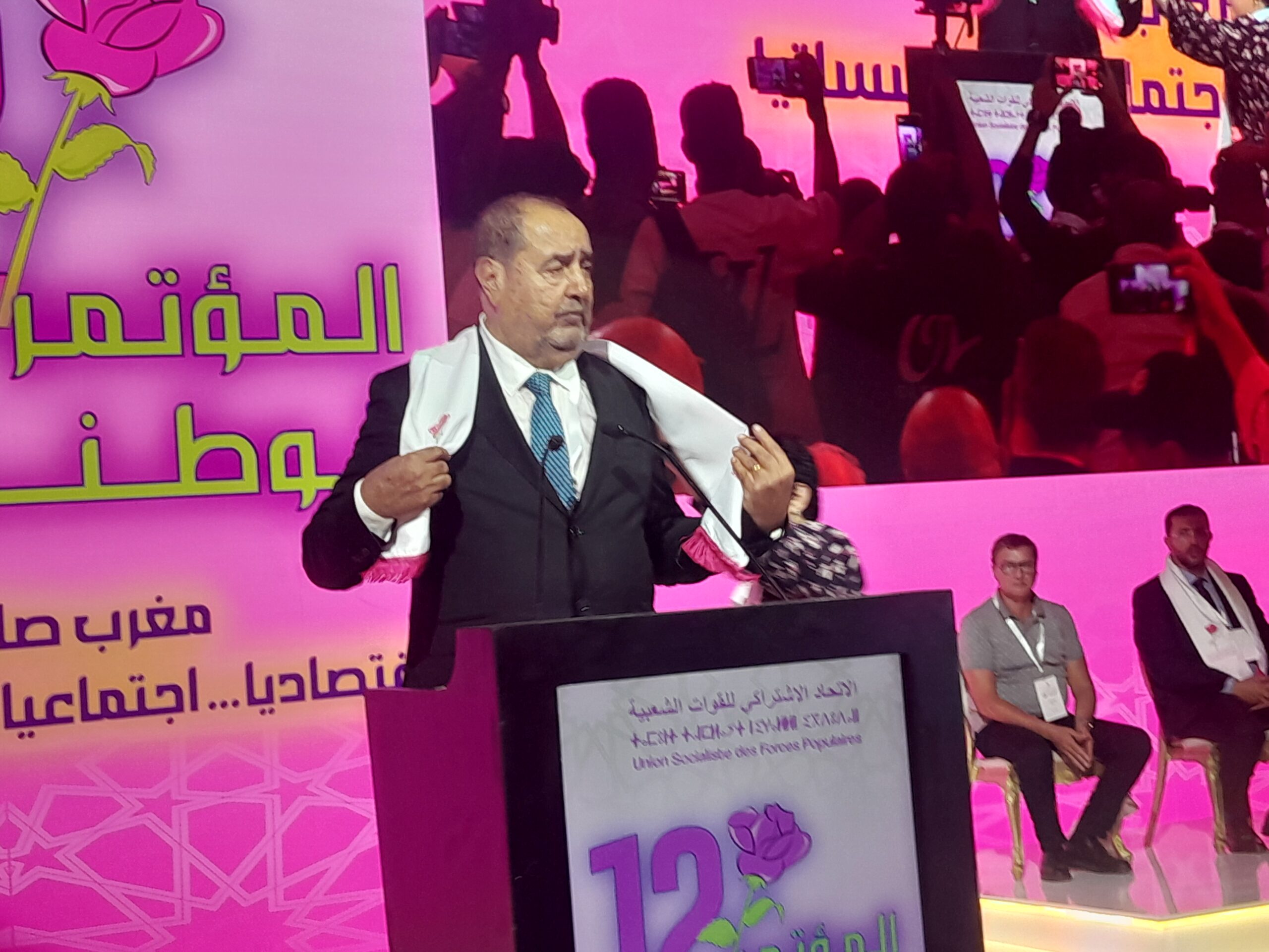 انطلقت مساء الجمعة بمدينة بوزنيقة أشغال المؤتمر الوطني الثاني عشر لحزب الاتحاد الاشتراكي للقوات الشعبية، وسط حضور وازن لعدد من الشخصيات السياسية والحكومية البارزة، يتقدمهم عزيز أخنوش، رئيس الحكومة والأمين العام لحزب التجمع الوطني للأحرار، إلى جانب زعماء أحزاب الاستقلال والأصالة والمعاصرة والتقدم والاشتراكية والاتحاد الدستوري.
