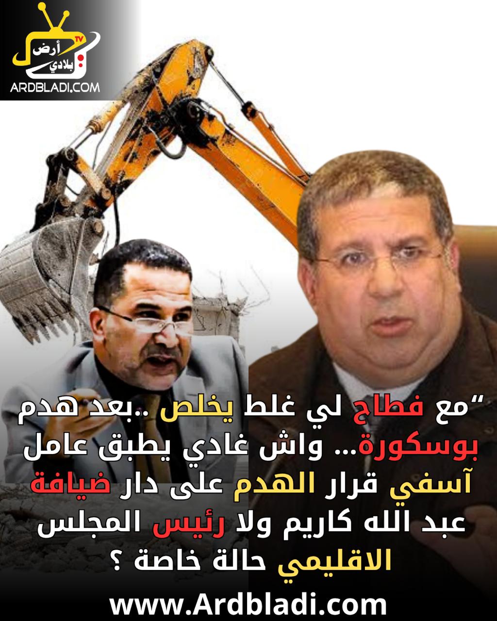 بعد الخطوة التي قام بها عامل إقليم النواصر بإشرافه على تنفيذ قرار هدم دار الضيافة المخالفة للقانون بمنطقة بوسكورة، عاد الجدل حول تنفيذ القانون على الأراضي المخالفة إلى الواجهة، وهذه المرة بإقليم آسفي، حيث يترقب الرأي العام ما إذا كانت السلطات المحلية ستتخذ خطوات مماثلة تجاه دار الضيافة المخالفة بضواحي سيدي بوزيد، والتي لم تُستكمل فيها الإجراءات القانونية لتسوية الوضعية.
