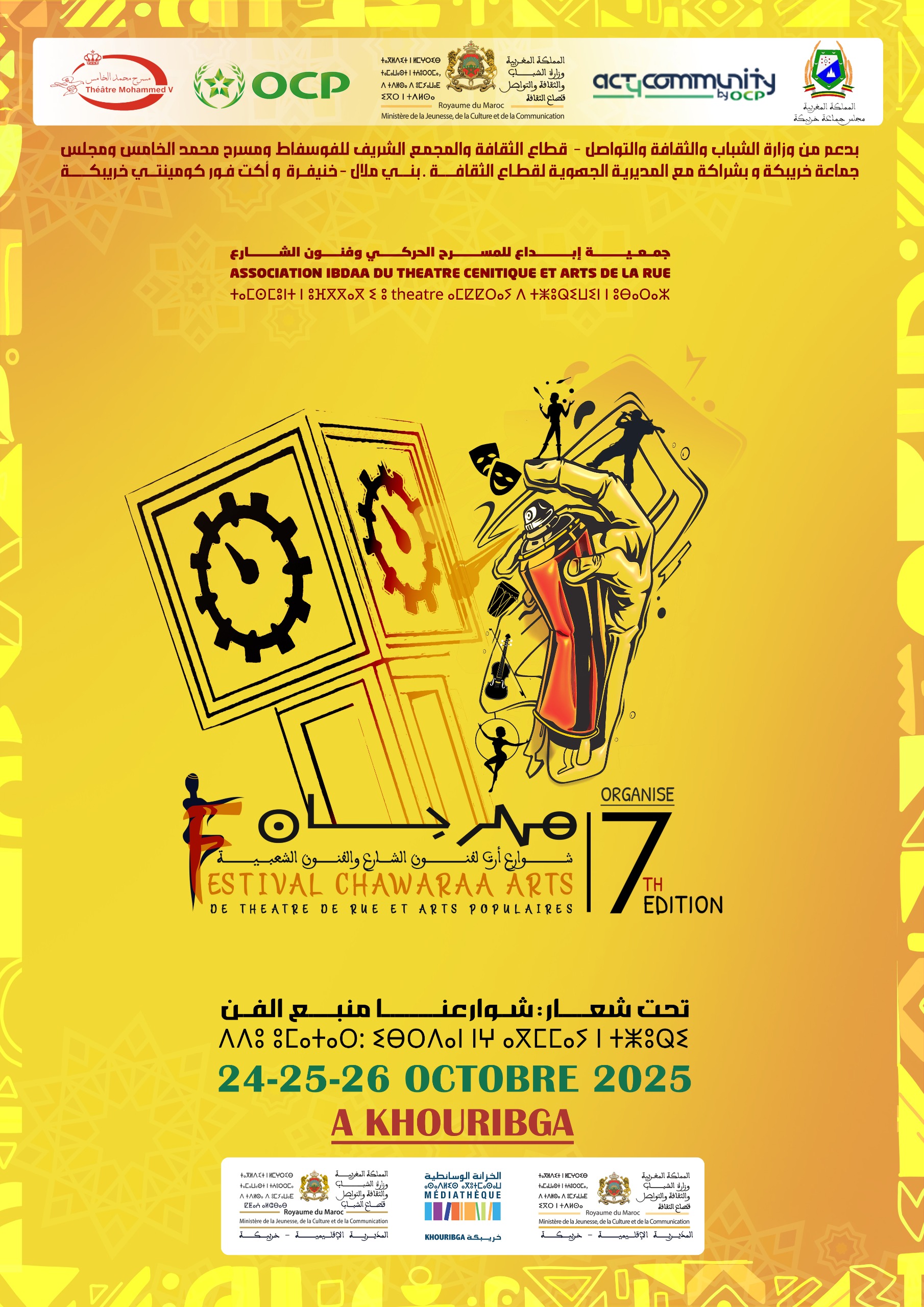 تستضيف مدينة خريبكة، في الفترة ما بين 24 و26 أكتوبر 2025، فعاليات الدورة السابعة من مهرجان “شوارع آرت” لفنون الشارع والفنون الشعبية، الذي تنظمه جمعية إبداع للمسرح الحركي وفنون الشارع، تحت شعار “شوارعنا منبع الفن”.