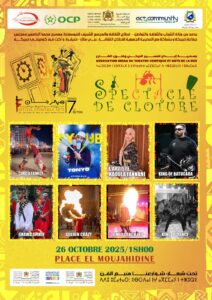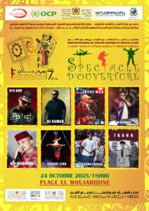 AYO ADR – DJ RAMAN – LIBERE MAN – M POWER – BEN CHAKROUNE – CIRQUE LINA – AFRICADOR TUCADA – 7GANG، في عروض فرجوية شبابية تمزج بين الموسيقى، السيرك، الإيقاعات الحضرية والفرجة البصرية.