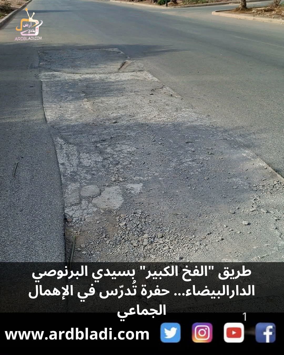 في الوقت الذي تُعلن فيه السلطات المحلية بين الفينة والأخرى عن مشاريع “تأهيل البنية التحتية”، يعيش سكان الطريق الرابطة بين إقامة العالية، إقامة شمس، وإقامة أملاك سيدي البرنوصي على وقع معاناة يومية مع حفرة ضخمة، باتت تتنافس مع الحفر الدارالبيضاء التاريخية في الصمود والإهمال.