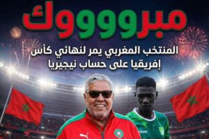 المستحقة ، والى الحارس بونو الذي تألق كعادته وأهدانا النصر النبين ، والى المدرب الركراكي الذي هو فال خير على الفريق الوطني ، والى الوزير فوزي لقجع رئيس جامعة كورة القدم صاحب نجاحات فريقة مدينته بركان ونجاحات الفريق الوطني في كأس عالم قطر وفوز فريق الأشبال بكأس الشباب ويوم الأمد 18 يناير 2026 سنفوز بكأس أفريقيا ان شاء الله لتكتمل الفرحة وتعم كل ارجاء المغرب …
