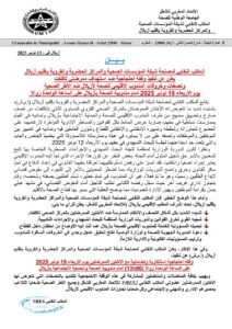 المكتب النقابي اختتم بيانه بالتأكيد على التزامه بالدفاع عن حقوق الأطر الصحية، ورفضه لكل أشكال الشطط والتسيير الانتقائي داخل مؤسسات الصحة بالإقليم.